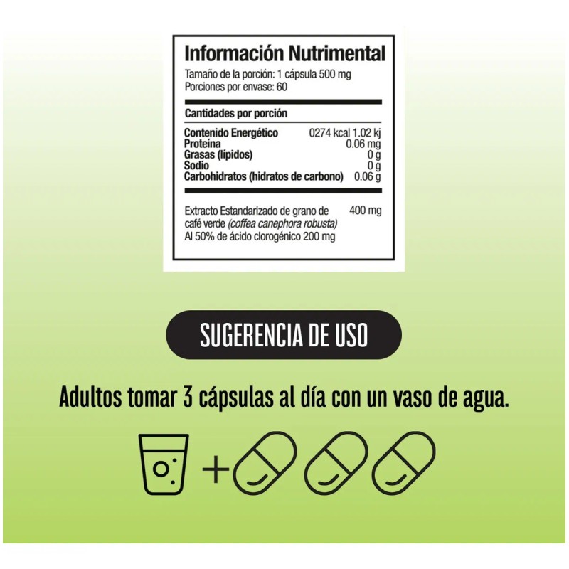 Green Coffee 60 Cpsulas Sin Sabor Suplemento Natural para Energa, Metabolismo y Control de Peso Dura 30 Das Estimula la Quema de Grasa...