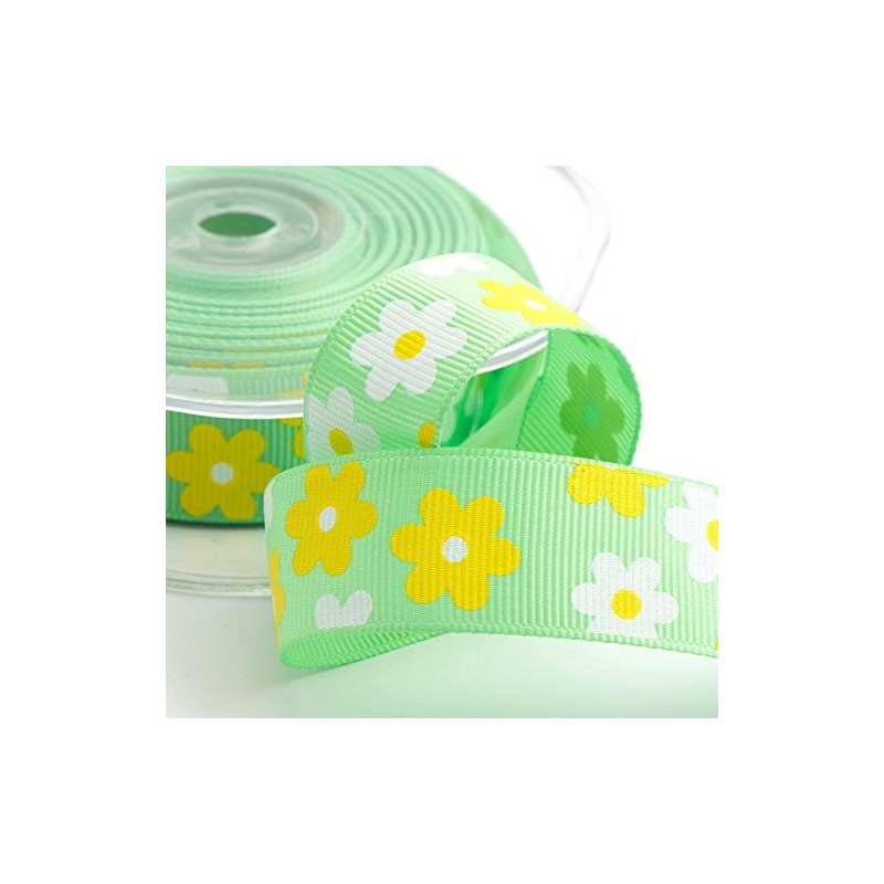 Green Daisy Floral Grosgrain Ribbon - 25mm x 10 Metres