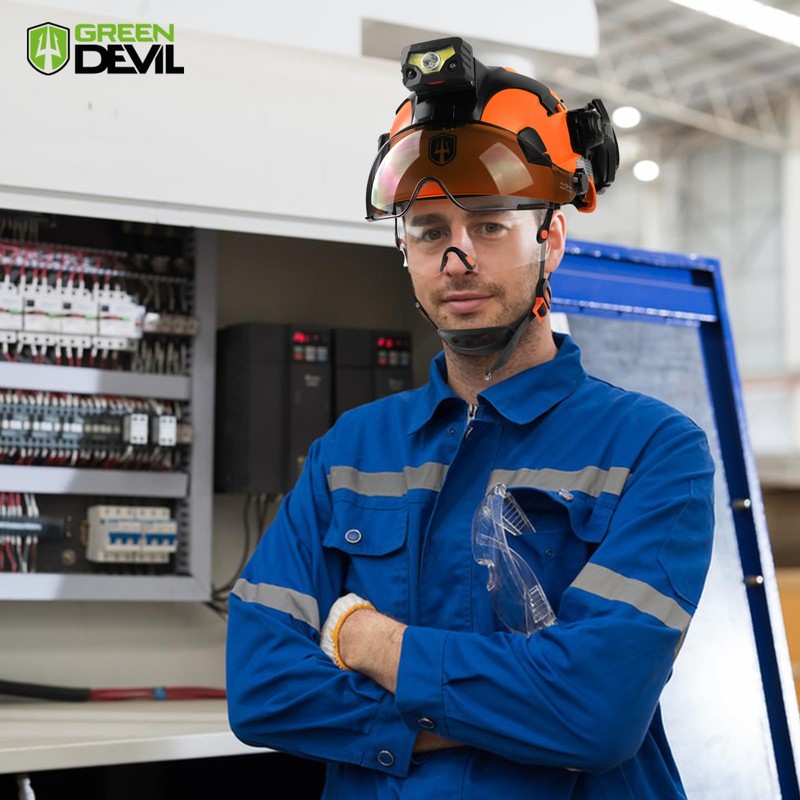 - 【Thoughtful Quality Service】:GREEN DEVIL hard hat with dual Layers visor,ear protection and headlamp combination is a good partner in your work. It is also a unique gift for family and friends.If you have any questions or suggestions about our safety helmet, please feel free to contact us. We are here 24/7 to chat and and give you the most satisfactory results and help.