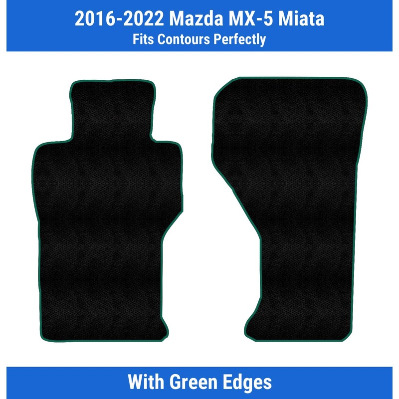 Green Edge Custom Fit Front Carpet Floor Mats, Black, Compatible with Mazda MX-5 Miata 2022 2021 2020 2019 2018 2017 2016