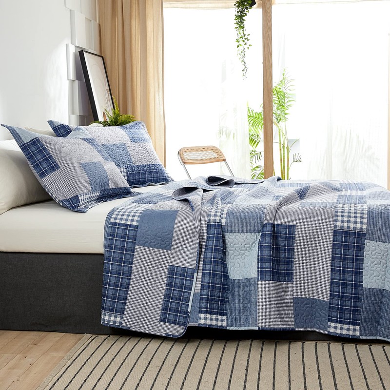 - 【Size Information】Twin Size blue white classic plaid bedding include 1 bedspread(68"x86") + 2 envelope standard pillow shams(20"x26"+2").