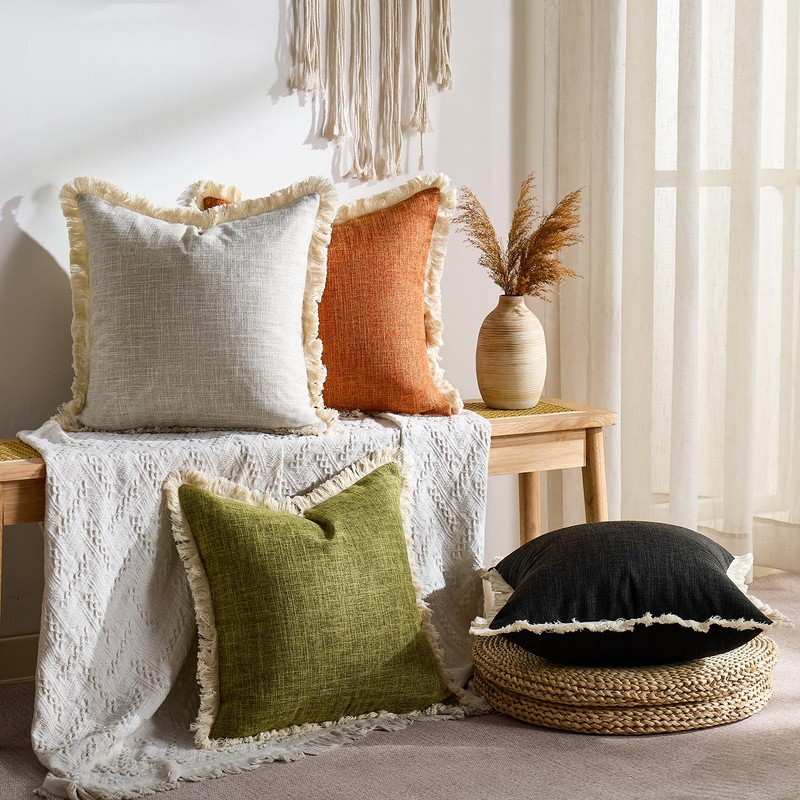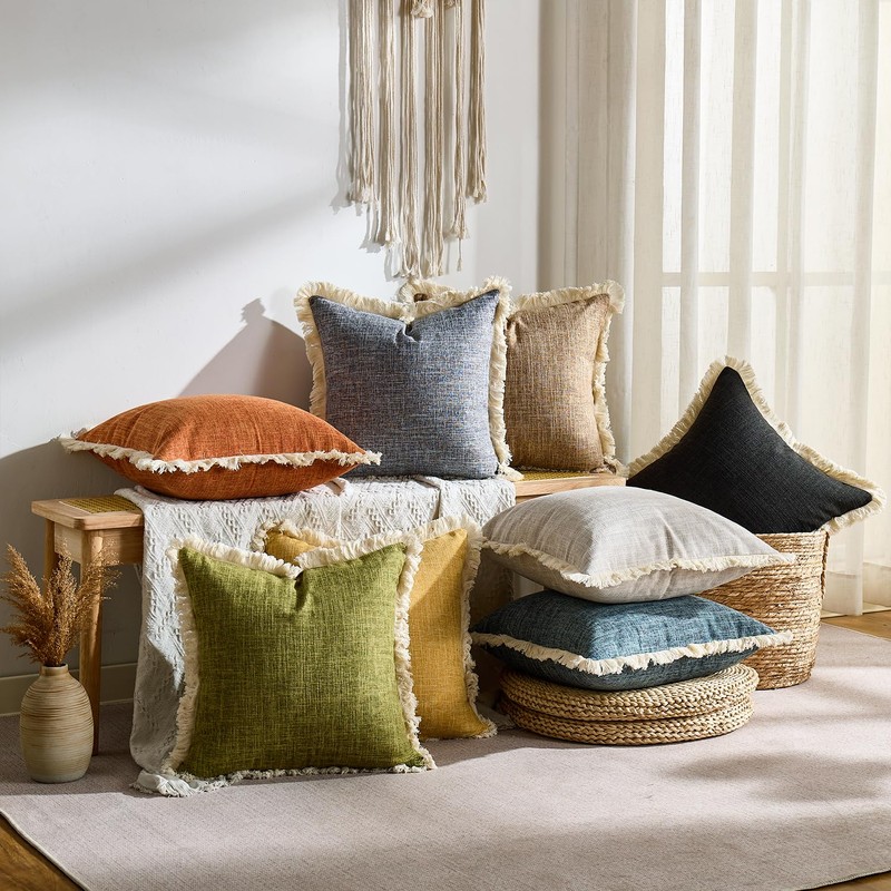 - Fringe Edges Design: These couch pillow covers are stitched with handmade fringes at the edges, which make the decorative pillowcase more chic and elegant. The simple design of throw pillow case matches well with bohemian, modern, rustic, retro, ethnic, and farmhouse style home decor.