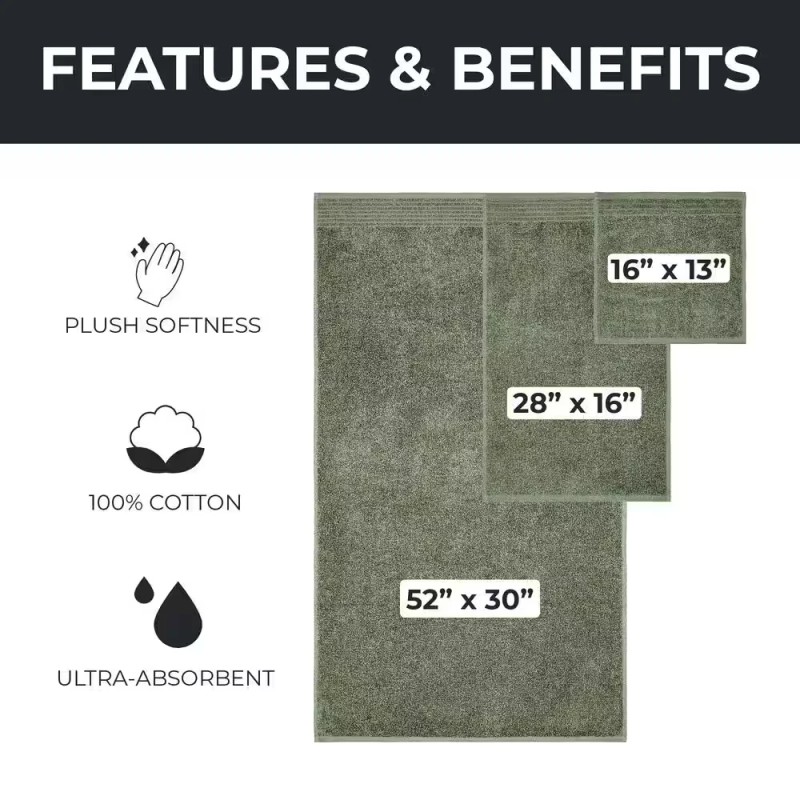 Green Featherspun Cotton Ultra Soft 6-Piece Towel Set