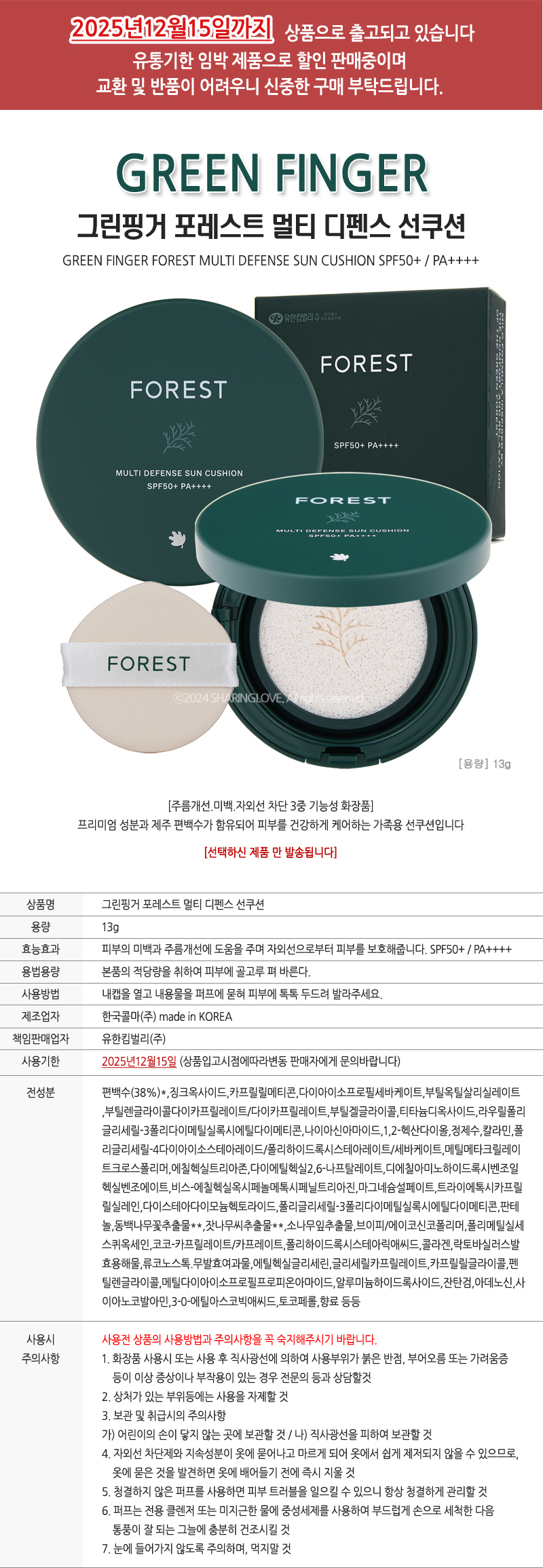 Green Finger Forest Multi Defense Sun Cushion (13g) / 그린핑거 포레스트 멀티 디펜스 선쿠션 본품 13g