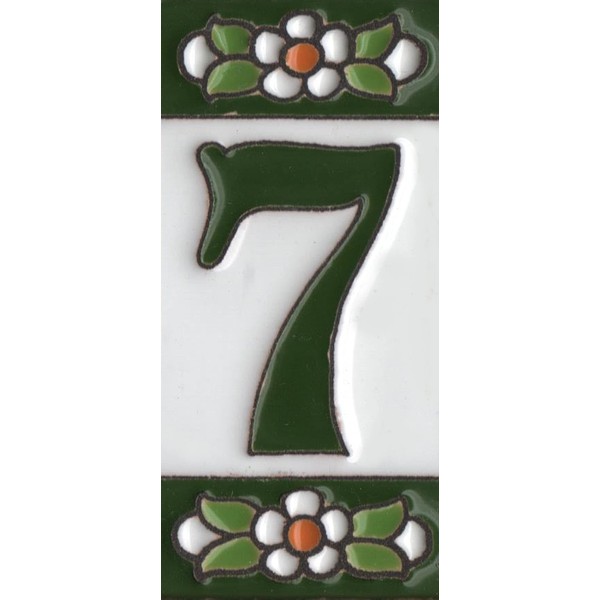 Green Floral Ceramic House Numbers & Letters Tile Size 7.5cm x 3.5cm 2 to 10 Tile Frames (7)