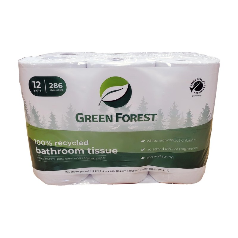 Green Forest Bathroom Tissue, 100% Recycled 12-Roll Pack, 286 Sheets per Roll (Pack of 4)