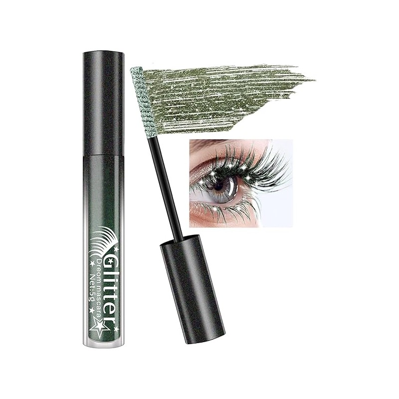Green Glitter Mascara - Sparkle Diamond Colored, Multi-Use Shimmer Waterproof, Define & Lengthen Eyelashes - Festival-05