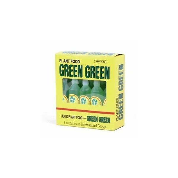 Green Green is a fertilizer , mixed with nitrogen, phosphoric acid and potassium.Green Green promotes and speeds up the growth of flowers and plantsIt is fertilizer for all kinds of plants, especially for lucky bamboo.10 bottles (36ml/each) Green Green plant foodFrom Korea, the original green green plant food