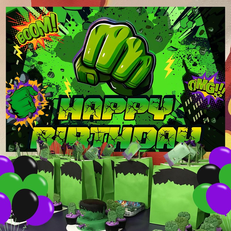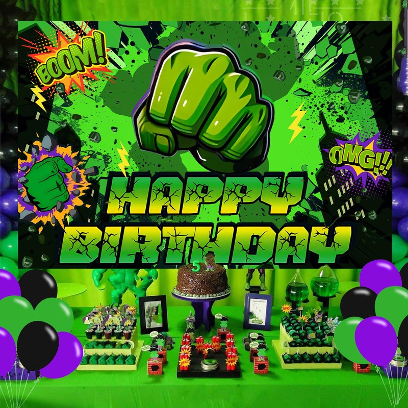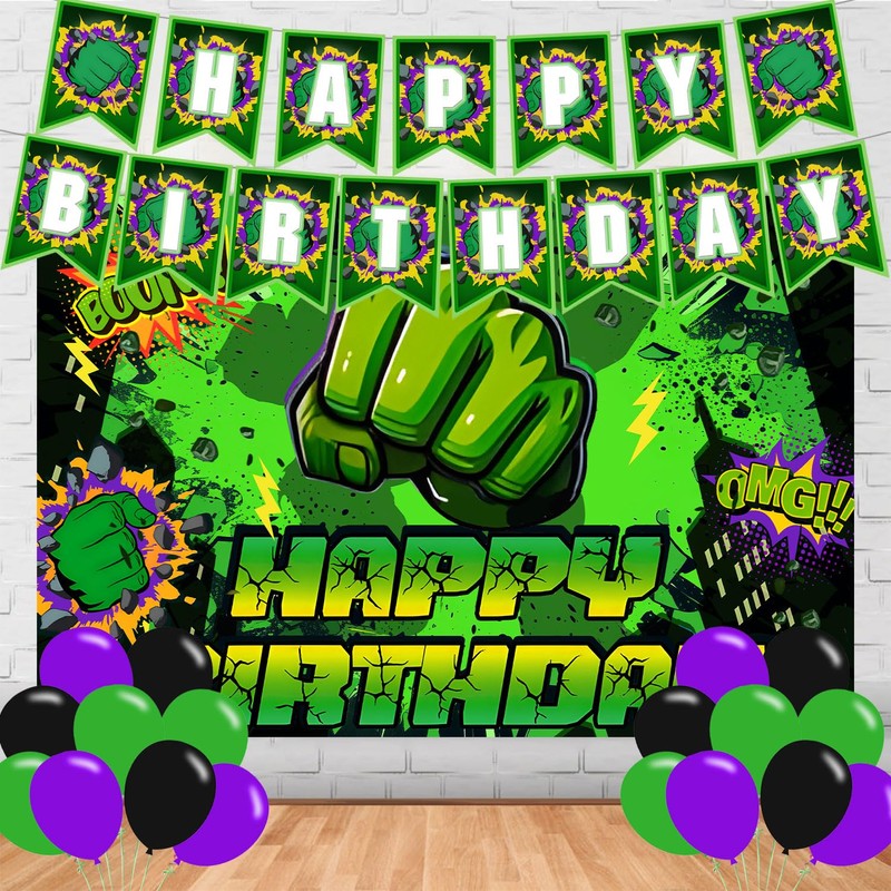- Rich Combination:This Cartoon Green Hero Party Decorations include 24 PC Ballons, 1 PC Green Hero backdeop, 2 Pc Cute HLK happy birthday banner
