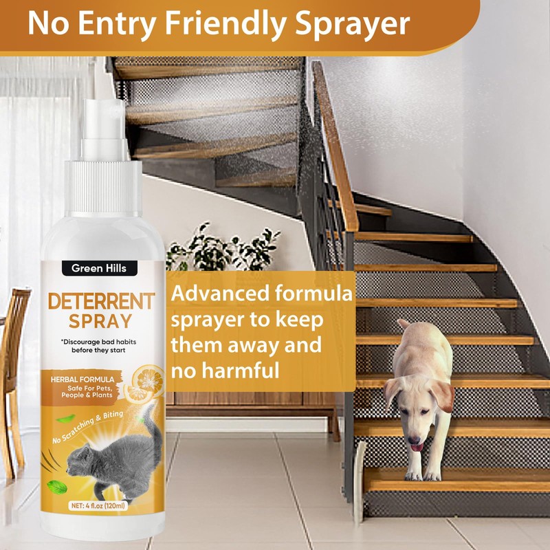 Green Hills Cat Deterrent Spray, Cat Repellent for Furniture & Plants, Effective Kitten Behavior Training & Keep Pet Off, Indoor and Outdoor, Bitter Orange Scent, 120ML