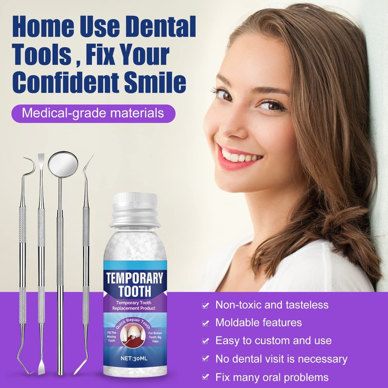 - [Safe & High Quality] - The tooth repair kit uses thermoformed beads made from environmentally friendly polymer plastic. Safe and odourless, you can use it with confidence and it will give you the power to smile again.
