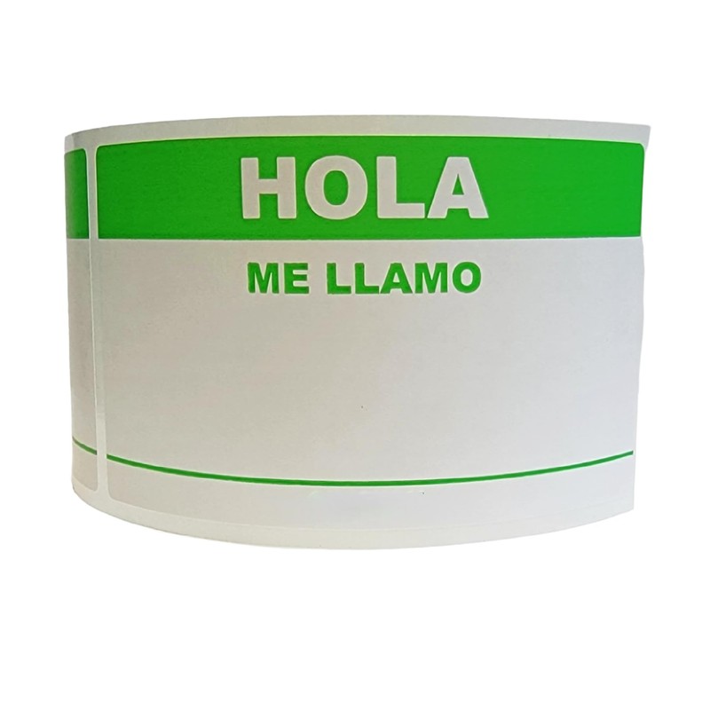 - You will receive 1 roll with 500 labels. Green Hola Me Llamo stickers with easy-to-read text on a 2"x3 1/2" label.