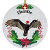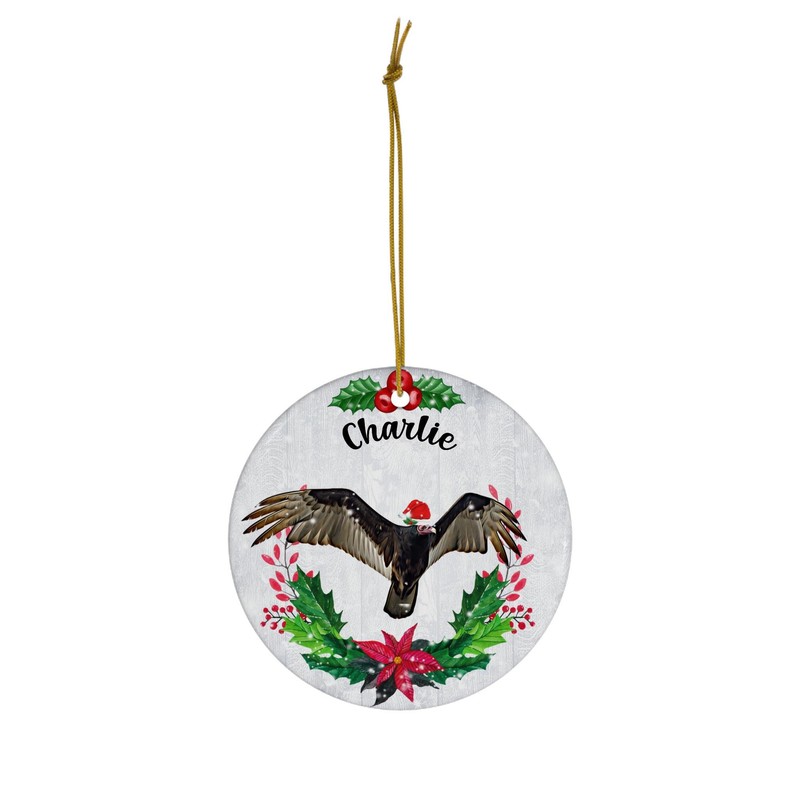 Green Holly Santa Hat Turkey Vulture Personalized Name Christmas Ornaments 2024 Circle White Ceramic Wild Animal Lover Gifts