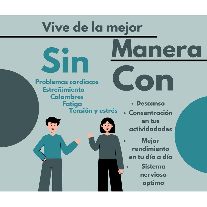 - Reduce calambres musculares: El magnesio es necesario para la función muscular adecuada, ayudando a prevenir y aliviar los molestos calambres.