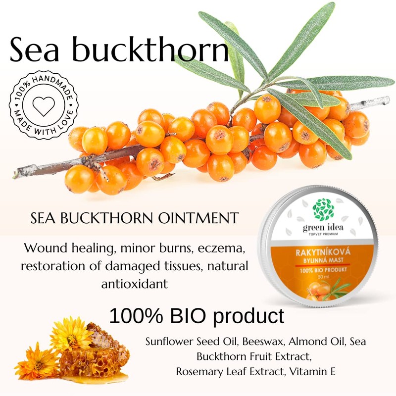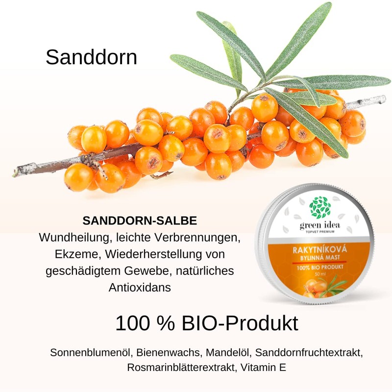 green idea Organic Sea Buckthorn Ointment - Regenerating - Wound Healing, Light Burns, Eczema, Restoring Damaged Tissue - Natural Antioxidant - 100% Natural - 50 ml (1)