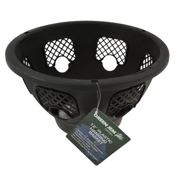 Green Jem 12-Inch Plastic Hanging Basket - Black