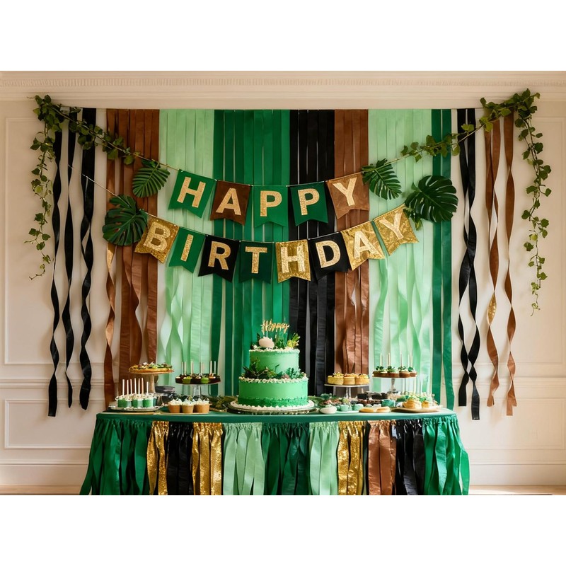 - 【Product Contents】2 rolls in deep leaf green, 1 roll in mint green,1 roll in earth brown, 1 roll in night black and 1 rolls in sunshine gold. Professional Jungle color matching,492ft(6rolls*82ft) in total.This premium set includes 6 rolls of high-quality crepe paper streamers in an elegant color palette: Each roll is precisely crafted to 25m / 82 feet in length and 4.5cm / 1.7 inches in width.
