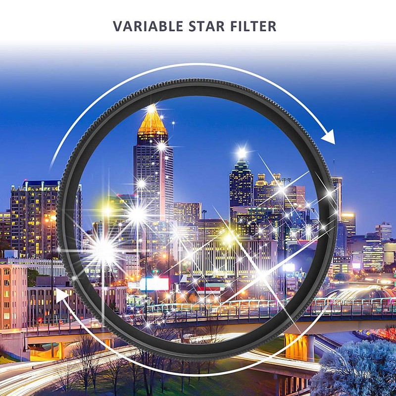 - 【Variable Star Filter】Rotate the filter to any degree to achieve the desired star effect.