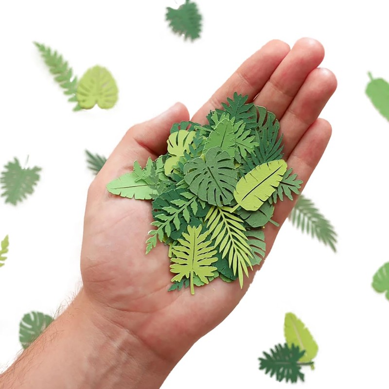 - Materials: Tropical Palm Leaf Confetti made of durable paper, and sturdy to use, not easy to deform or fade. Spread out confetti, Add color your party!