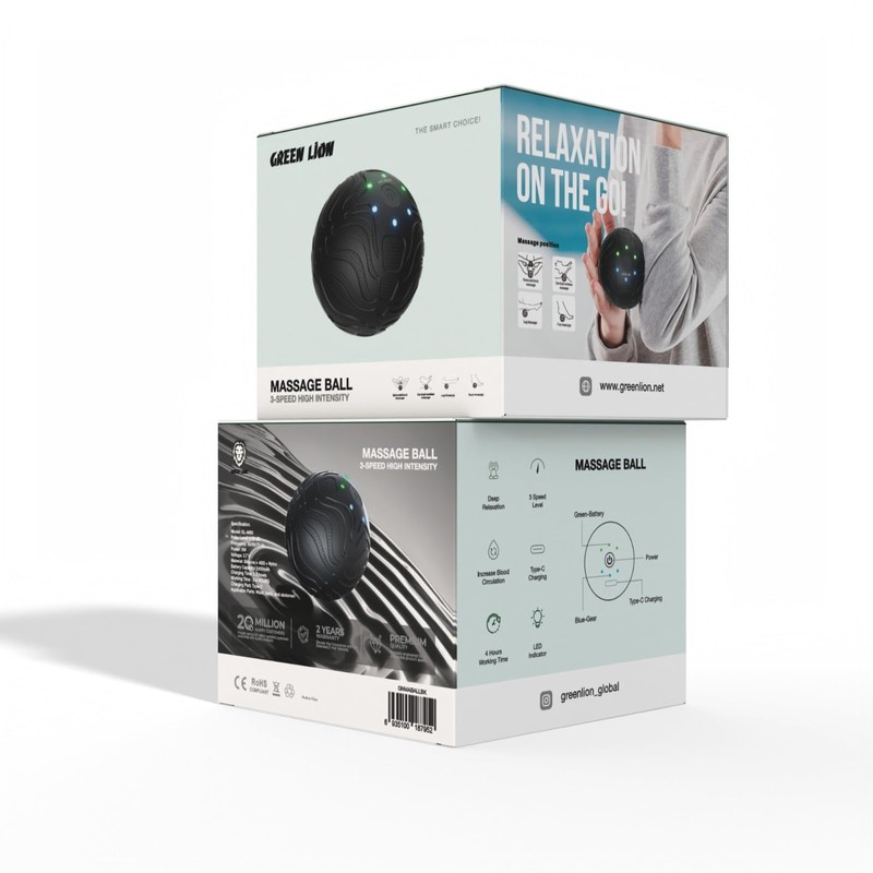 Green Lion Massager Ball, 3 Speeds Level, Deep Relaxation, for Muscle Recovery, Myofascial Release and Soreness Relief - Portable Fitness Massager, perfect for use at the Gym/Home/Office/Camping