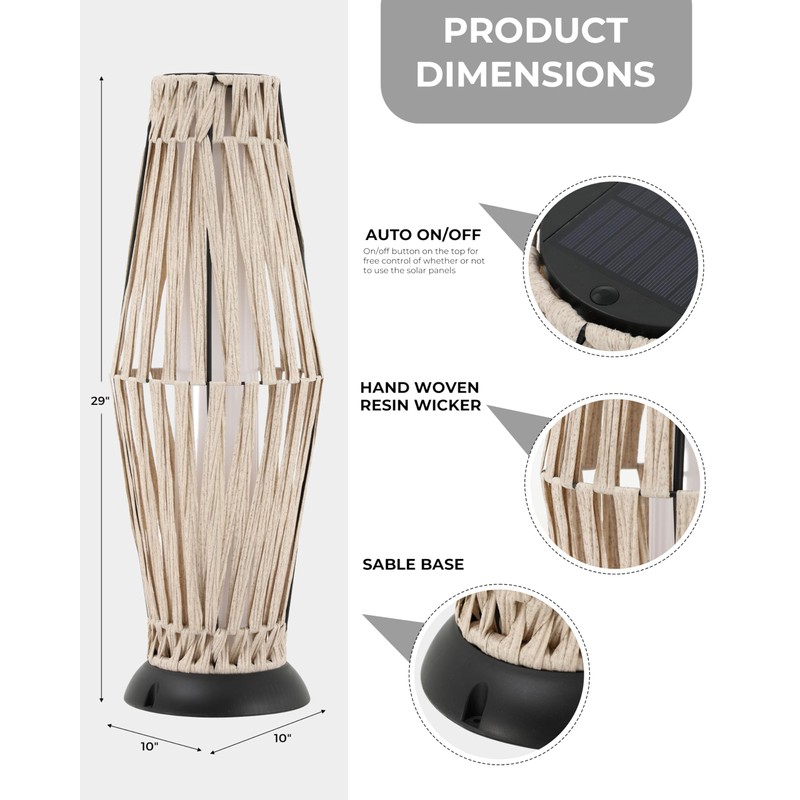 - Artisan Rattan Design (10.6"x10.6"x30"):Compact 10.6-inch width and 30-inch height (27x27x76cm) ensure unobtrusive placement in gardens or tight spaces. Handwoven rattan casing blends rustic charm with modern durability, perfect for alfresco dining or cozy evenings