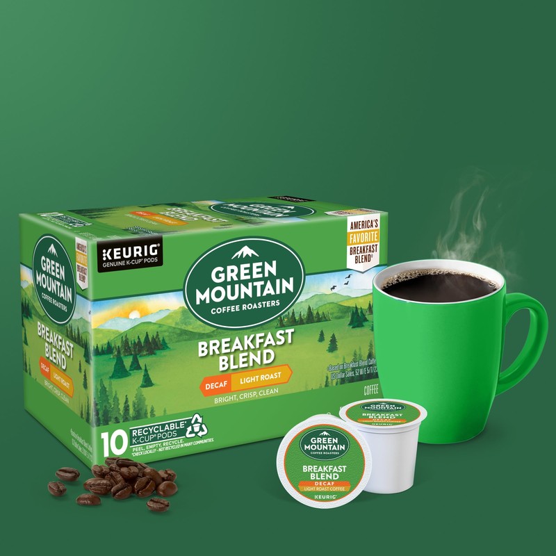 Green Mountain Coffee Roasters Breakfast Blend Decaf, Keurig Single Serve K-Cup Pods, Light Roast Coffee, 60 Count, (6 Packs of 10)