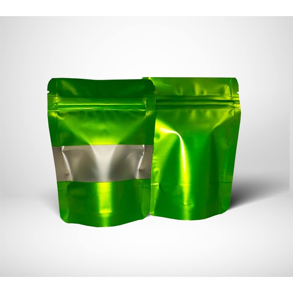 Green Mylar Bags 3.5g Smell Proof Packaging x100