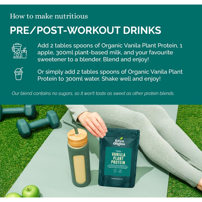 Green Origins Green Origins Organic Vanilla Plant Protein Powder with Ginger | 63% Protein |10 Servings, 300g | Vegan, Dairy Free, Gluten Free, No Added Sugar