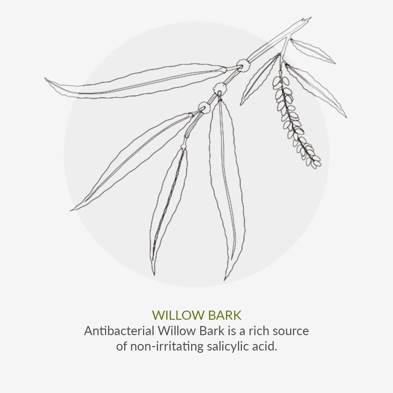 - Rosehip, willow bark and prebiotics are our most important skin-balancing active ingredients against impurities. Prebiotics ensure a balanced and natural skin flora. Willow bark soothes irritated and inflamed skin areas. Rosehip prevents scarring caused by acne