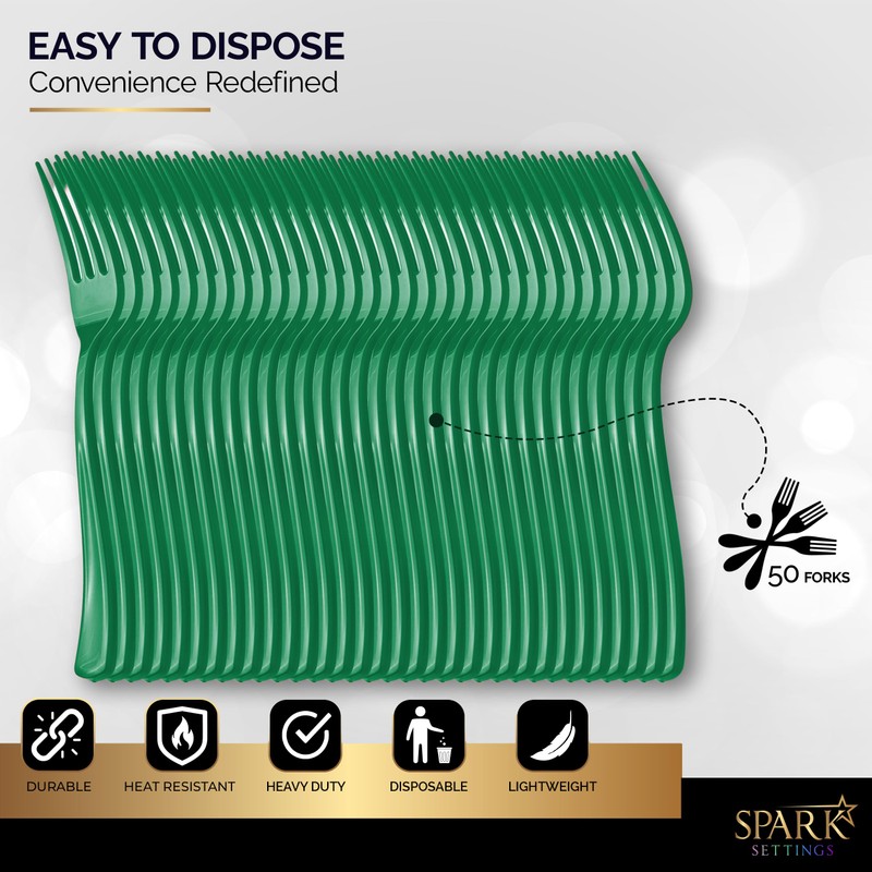Green Plastic Forks Disposable 50 Pack, Heavy Duty Plastic Silverware, Plastic Cutlery Ideal for Hot and Cold Food, Plastic Utensils for Home Office School Party Picnics Weddings - SparkSettings