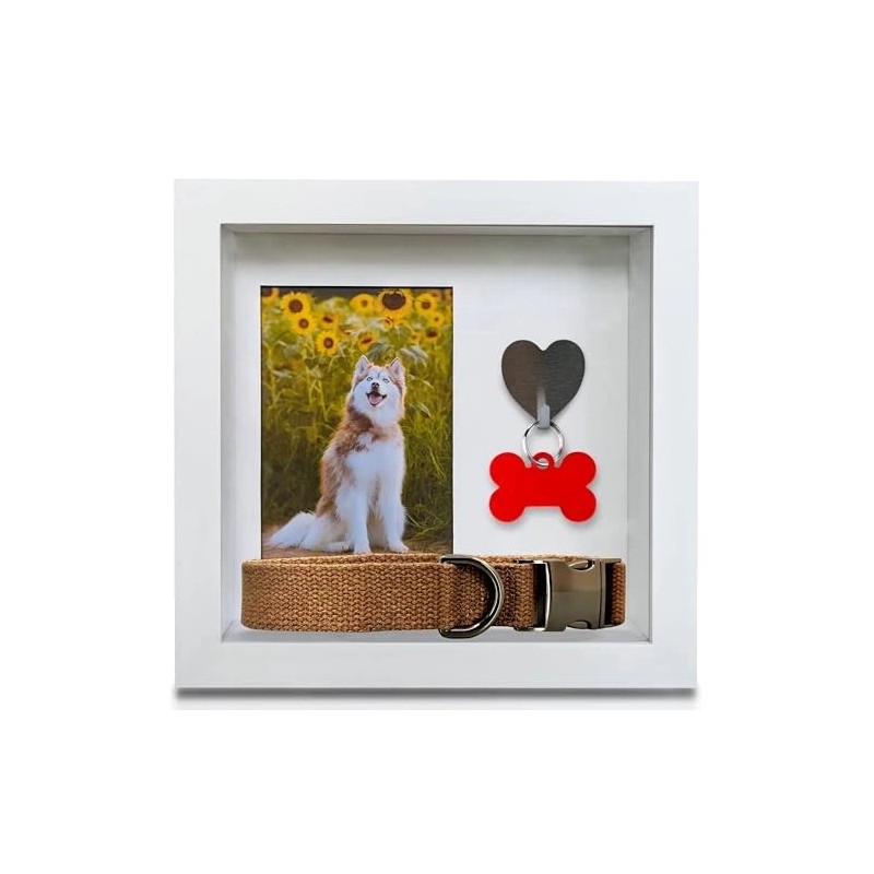 Green Pollywog Dog Tag Keepsake and Picture Frame | Pet Collar Tag Memorial Shadowbox Frame