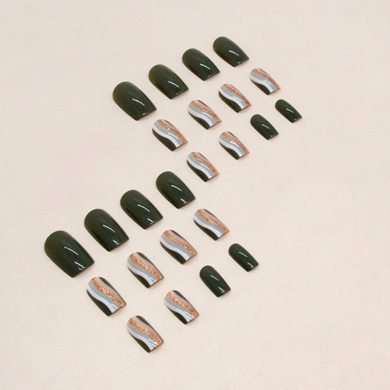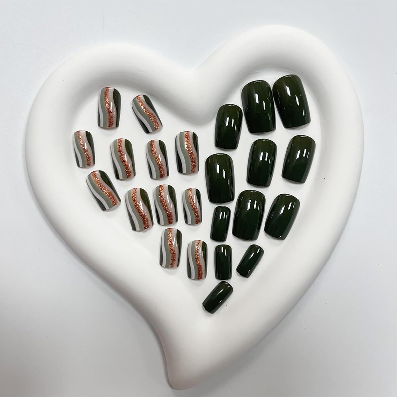 Green Press on Nails Short Square Fake Nails with Gold Glitter Line Design Glossy False Nails Acrylic Artificial Stick on Nails for Women Girls Daily Wear Nails Decoration 24pcs…