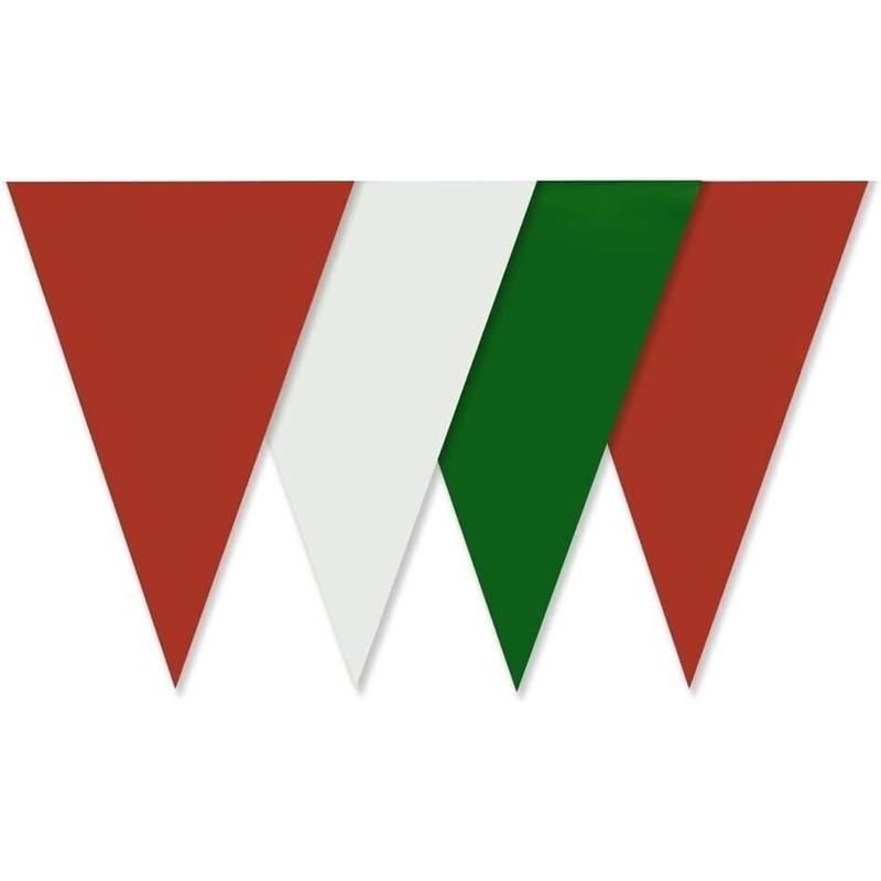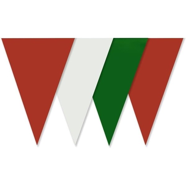 - Green, Red and White Bunting 10m with 20 Pennants. This bunting measures 10m and has 20 pennants. Material: PVC. Approx size of each Flag/ Pennant 30x20cm.