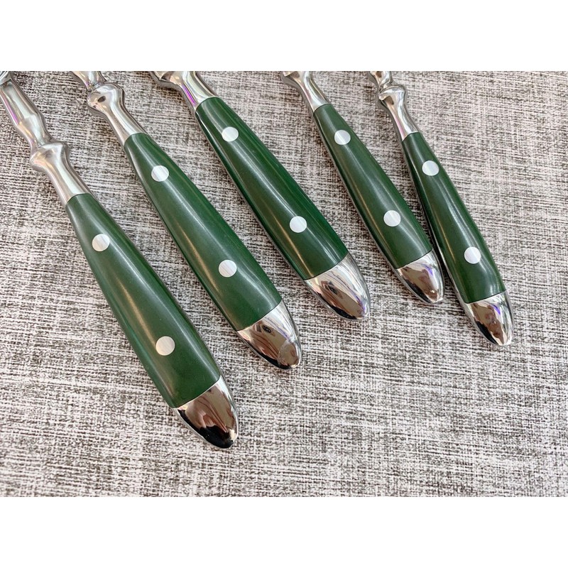 The silhouette of each cutlery gently moves from the narrow point of the head to the wide width of the bottom, and the subtle transitions of the neck and base set off the bold styling. Made from high-quality, finest materials – made from food-grade stainless steel with a finely polished glossy mirror finish, this vibrant cutlery is well-made, resistant to bendability and durable enough to make you feel truly "in love".