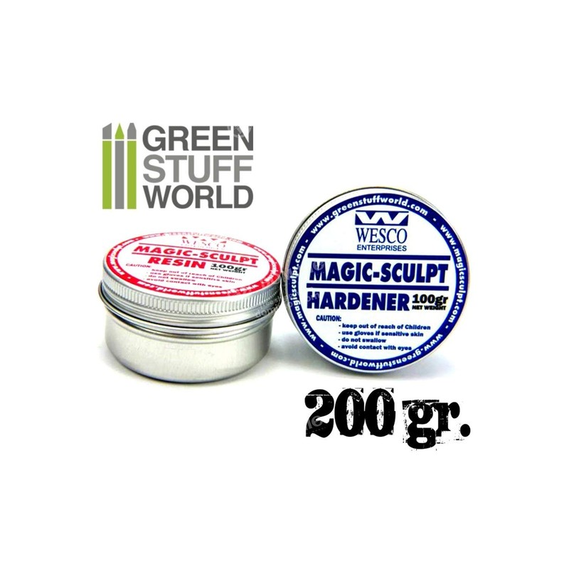 What is Magic Sculpt? It is an epoxy putty acclaimed by hobbyists and professionals alike and holds a notable position in the realm of arts, crafts, and DIY repairs. With its unique blend of versatility, ease of use, and excellent performance, it provides a transformative experience for those working with it. Magic Sculpt is a two-part epoxy putty that hardens at room temperature. It's a substance renowned for its flexibility and strength. Once the resin and hardener are mixed, you're provided with a workable timeframe of 90-120 minutes for molding and detailing. This period is ample for meticulous work, from fine crafting to intricate repairs. Content: (i) This set contains 200gr. of Magic Sculpt Putty packed in metal premium aluminum jars to improve its preservation. How to use Magic Sculpt epoxy clay? The resin-to-hardener ratio can be adjusted to fit your project's specific demands. By increasing the amount of resin relative to the hardener, you can obtain a softer putty. This kind of mixture is perfect for crafting more elaborate and delicate features such as the texture of clothing or the definition of muscles in sculptures. Combining it with other epoxy putties can give different results and on its own, it has a texture and finish similar to the green putty + Milliput mixture. It is adherent while soft, not very elastic, and offers more drying time than other epoxy putties. If we mix it by adding twice as much resin as hardener, we get a softer putty and suitable for the most laborious details such as clothes and muscles. When working with it we will have to always keep the tools wet, preferably with water, liquid petroleum jelly, or alcohol. It is highly recommended to use brushes with silicone tips or color shapers for smoothing. The longer we let it dry, the harder and more consistent it will be to be able to sand it and/or work reliefs. Successful Working Techniques and Tools Proper handling of this epoxy putty is a cornerstone to achieving optimal results. It's vital to keep your tools moist with water, liquid petroleum jelly, or alcohol while working with the putty. This approach prevents it from adhering to the sculpting tools and aids in smoother application. Brushes equipped with silicone tips or color shapers are especially recommended for obtaining a polished finish. Drying Time and Post-Cure Processing The curing period is crucial to the final product's hardness and consistency. The longer is left to dry, the harder and sturdier it becomes. This characteristic makes it an excellent candidate for further procedures such as sanding or creating intricate reliefs. Durability, Heat Resistance, and Proper Storage Apart from its crafting attributes, This material is also celebrated for its durability. It can tolerate high temperatures of up to 130ºC, which is a testament to its resilience. However, the effectiveness of this material relies heavily on proper storage. It typically comes in two individual aluminum cans designed to enhance its longevity. By ensuring these cans are well-sealed and stored in a cool, dry place after each use, you can extend the material's shelf life significantly. Safety First: Precautions with Magic Sculpt Safety should never be compromised when working with any crafting material, including magic sculpt epoxy clay. Make sure you operate in a well-ventilated area to avoid inhaling any potential fumes. Using gloves to avoid direct skin contact is also a good practice. Where can I buy Magic Sculpt? Green Stuff World is an excellent place to buy Magic Sculpt. We are a Spain-based company specializing in hobby materials and acrylic paints distributing our products worldwide. Green Stuff World stocks this resin along with a variety of other modeling materials, including Green Stuff, Brown Stuff, and Milliput. We offer secure online payment options and shipping to all countries, making it convenient to purchase whatever crafting and sculpting materials you need. This two-component material indeed stands tall in the world of crafting, sculpting, and repairing materials. Whether you're a seasoned artist, a repair technician, or an enthusiastic DIYer, it offers a perfect balance between ease of use and stellar performance. This epoxy putty opens up a realm of possibilities, limited only by your creativity.