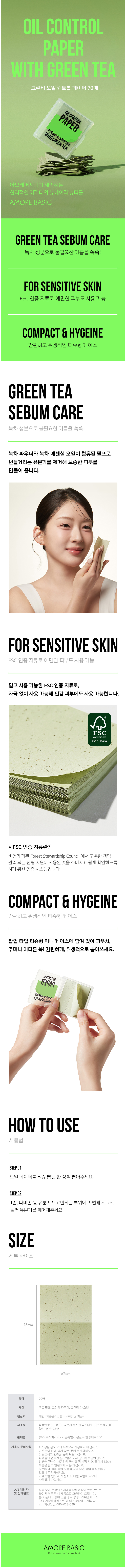 그린티 오일 컨트롤 페이퍼 70매 3매