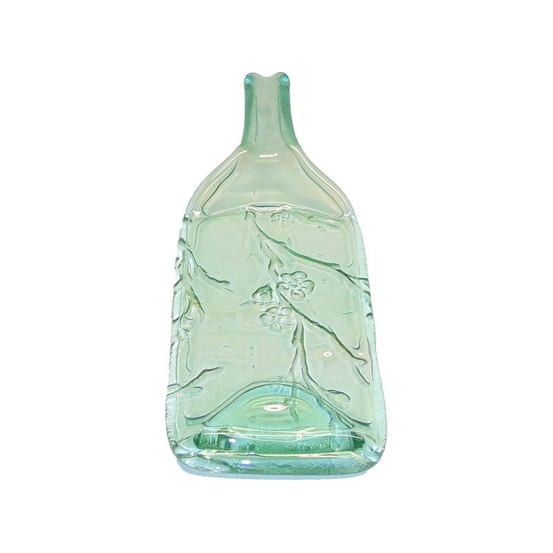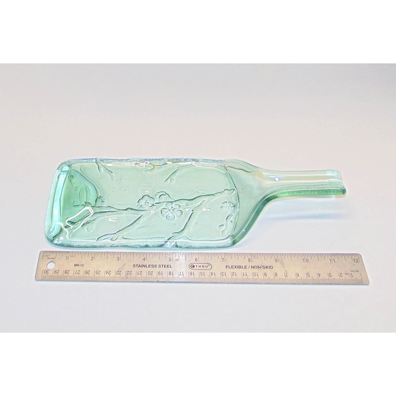 Green Tint Cherry Branch Wine Bottle with Raised Neck UpCycled as Spoon Rest or Cheese Platter