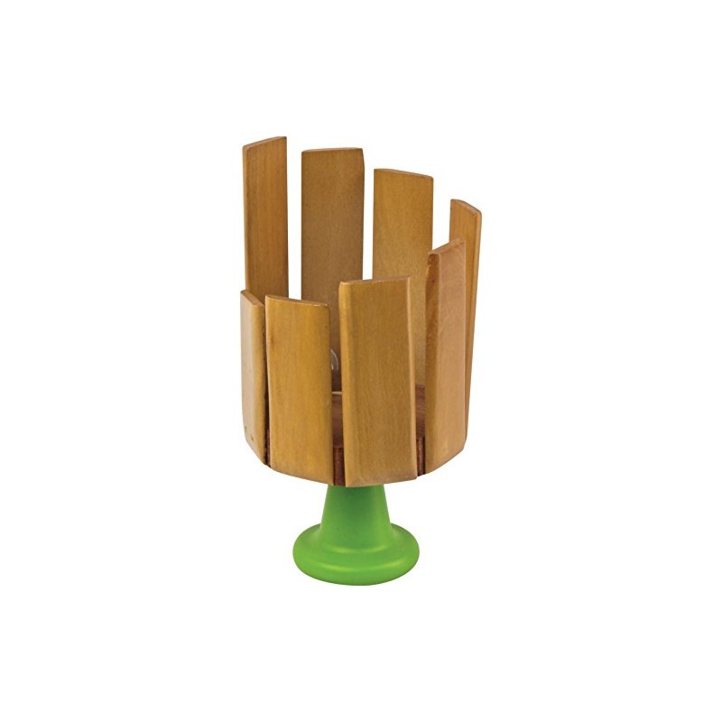 - Features a smooth, wooden handle that makes it easy to hold and play