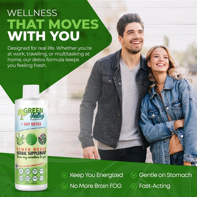 Green Valley 1 Day Full Body Detox - Vegan Friendly Herbal Cleanser for Liver, Kidney, Colon Support with Natural Ingredients | 8 Fl Oz
