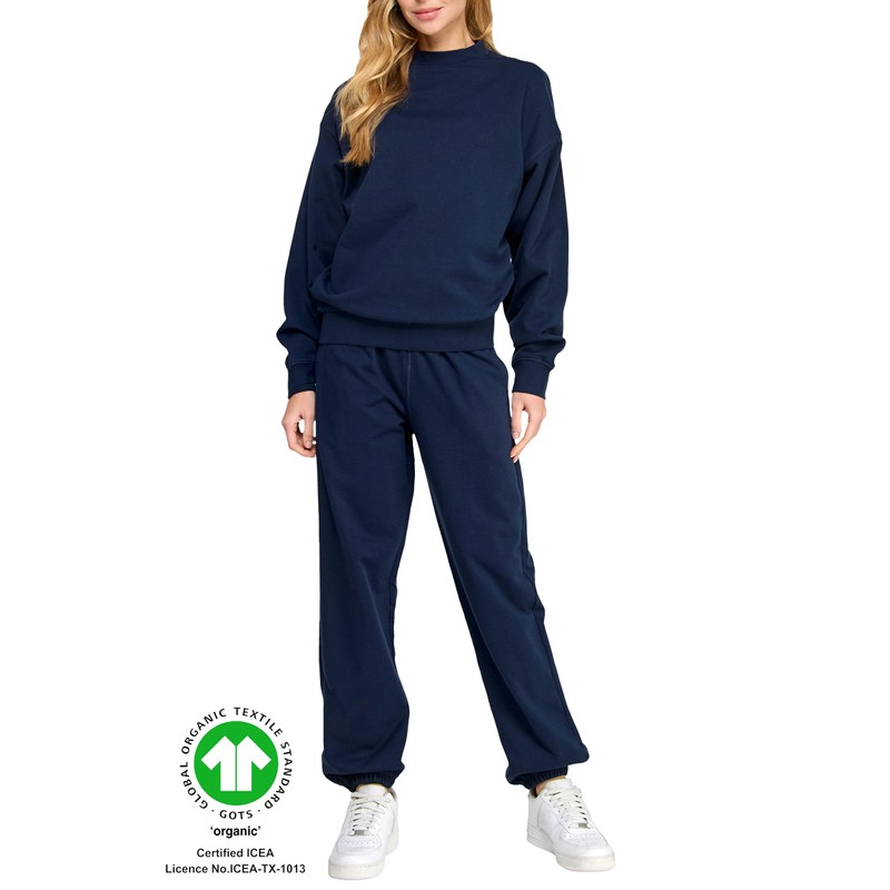 GREEN VOYAGE Women's GOTS Certified 100% Organic Cotton Heavyweight Oversized Sweatshirt, Navy, S