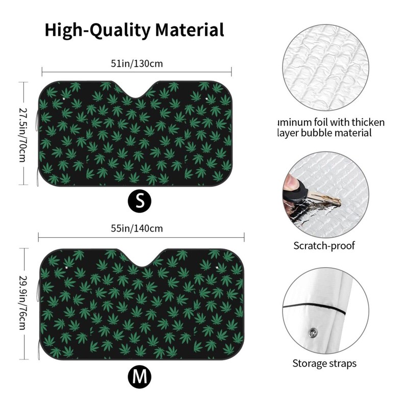 Green Weed Leaves Windshield Car Sunshade Foldable Uv Ray Reflector Front Window Sun Shade Visor Shield Cover Car Accessories Medium Fit Trucks SUV Car
