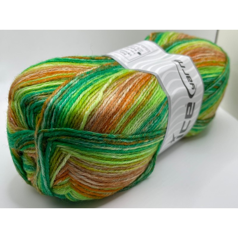 Green, Yellow-Green, Russet Brown Sock Varicolor Yarn - Ice Yarns Superwash Merino Wool, Nylon, 100 Gram (3.53 oz) 420 Meters (459 Yards)