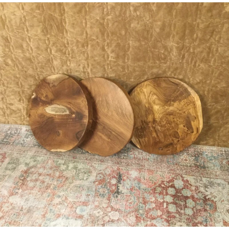 Greenage Rustic Natural Round Teak Wood Slab Table Top DIY for Side End Table Home Decor