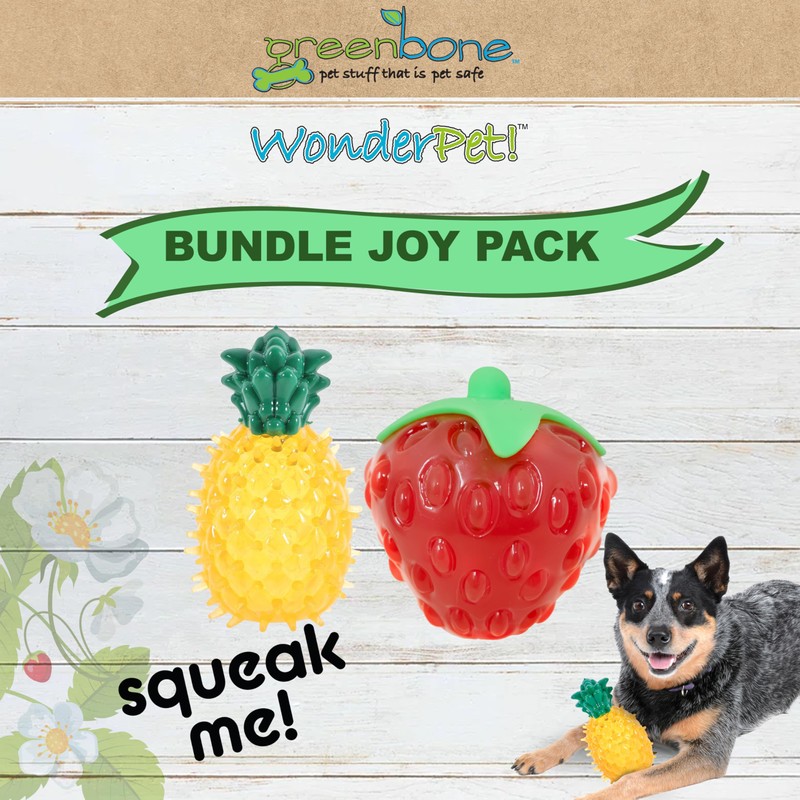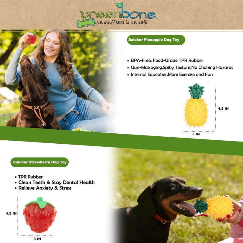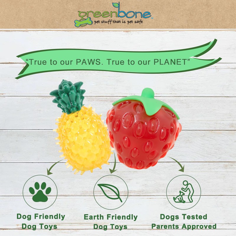 Greenbone Squeak Dog Toy Bundle – Durable Bite-Resistant Fruit Toys for Dogs – Interactive Strawberry & Pineapple Chew Toys – BPA-Free, Squeaky, Dental Nubs for Clean Teeth