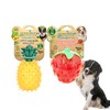 - FUN & INTERACTIVE FRUIT-THEMED DOG TOY SET – This bundle includes two juicy squeak toys shaped like a strawberry and pineapple, designed to keep your dog entertained for hours with their playful, squeaky design.