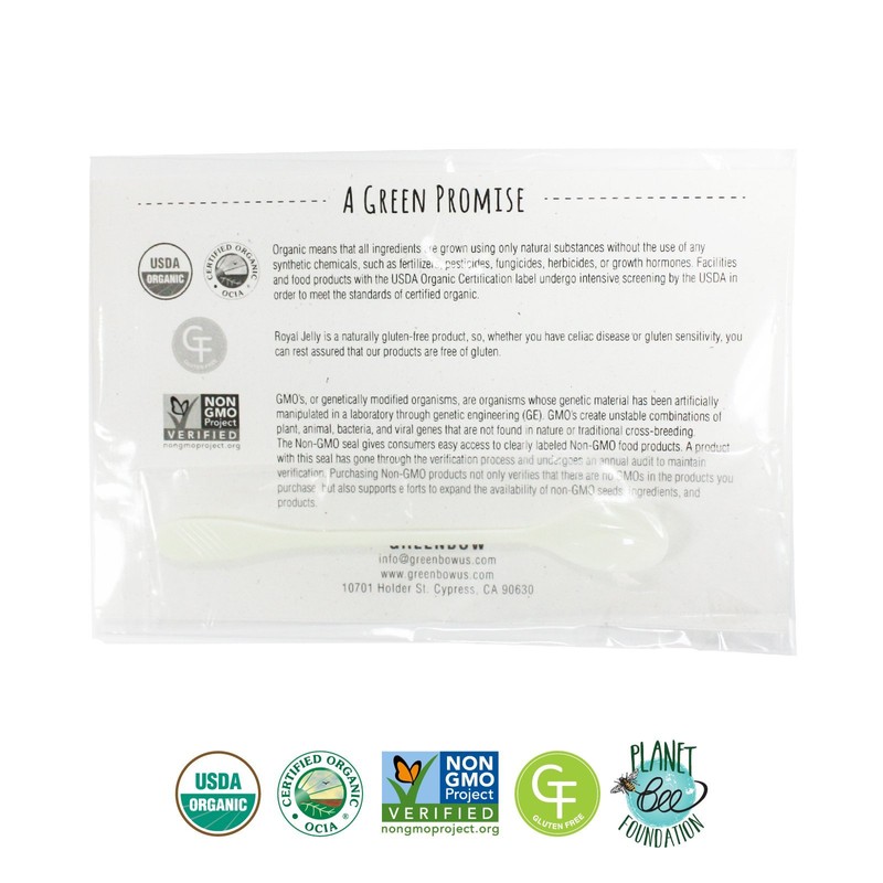 - USDA CERTIFIED ORGANIC – Unlike many Royal Jelly products out there, GREENBOW Organic Royal Jelly is certified to be fully organic by the USDA – This involves following stringent quality criteria at all stages from harvesting to delivery