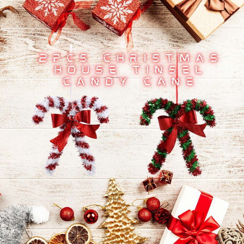- 🎄This Christmas, get into the festive mood by adorning your tree with this gorgeous Christmas candy cane ornament. This magnificent decoration includes a dazzling red and white candy cane made of tinsel that will shimmer and shine as it catches the light, adding a delightful touch of fun and holiday spirit.