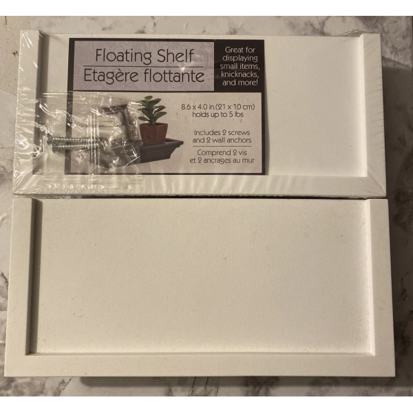 Small White Floating Shelf PVC Plastic and Hanging Hardware Holds 5 lbs 8.6 x 4.