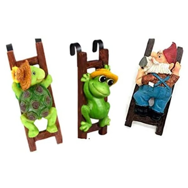 • These adorable pot pals are just hanging around! GET TWO Cute little plant pot decorations that measure 5-in. tall and as pictured you get 3 of our "Turtle, Frog, and Gnome Set" climbing a ladder.