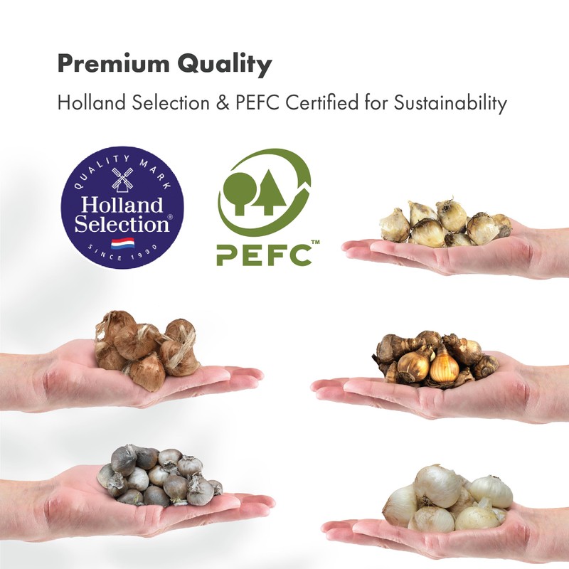 - Premium quality bulbs "Holland Selection Quality Mark" & "PEFC Certified" from sustainably managed forest and controlled sources. Outer packaging can be recycled.